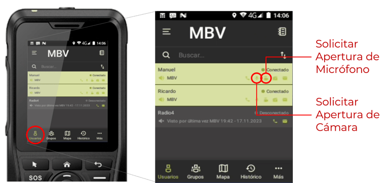 Control Remoto de otros Radios del grupo, solicitud y apertura de Video y/o Audio.
